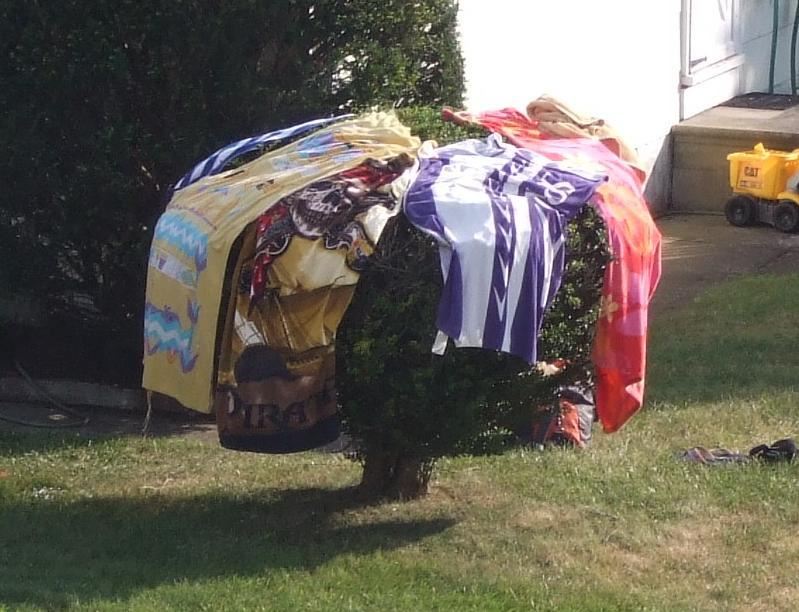 A towel tree across the street.